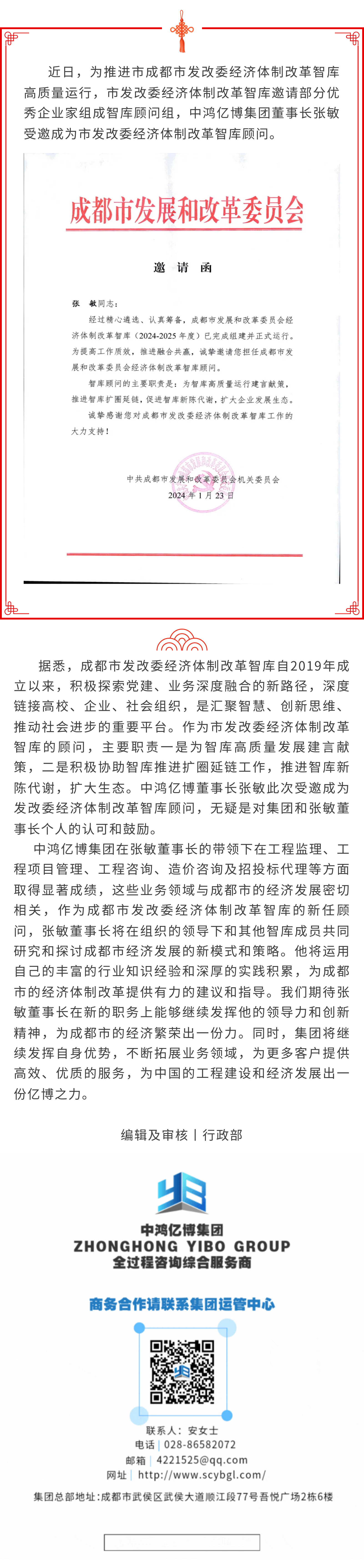 億博動態(tài)丨集團董事長張敏受邀擔(dān)任市發(fā)改委經(jīng)濟體制改革智庫顧問