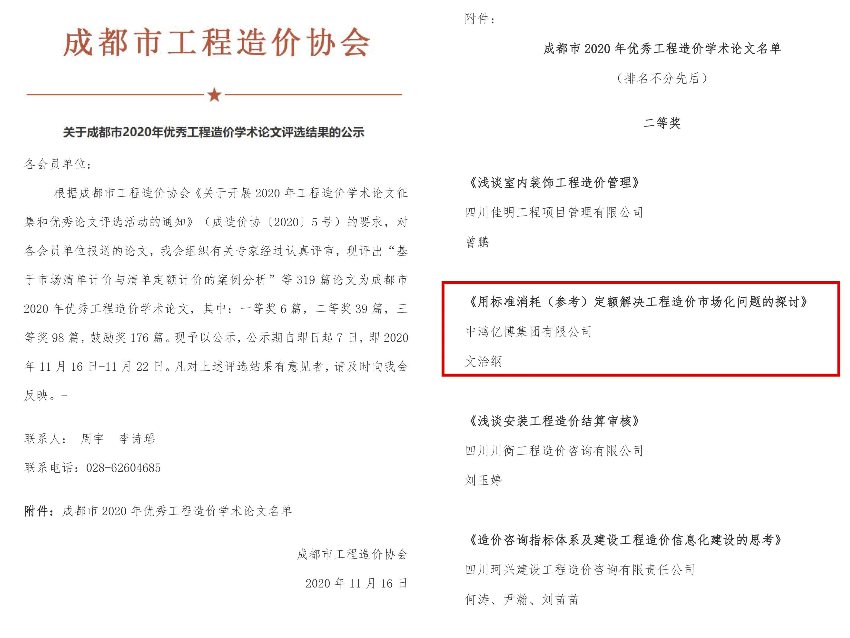 據(jù)悉,為引領(lǐng)工程造價行業(yè)科學(xué)發(fā)展,促進行業(yè)學(xué)術(shù)理論的交流,推動技術(shù)進步及優(yōu)秀人才成長,此次評選活動面向工程造價咨詢行業(yè)專業(yè)人士、各級工程造價管理單位、工程建設(shè)單位等征稿,參選論文中有319篇獲獎,獲獎?wù)撐膶⑷脒x《2020優(yōu)秀工程造價學(xué)術(shù)論文集》,同時將向國家、省級、市級學(xué)術(shù)期刊推薦發(fā)表。很感謝造價協(xié)會提供這樣一個行業(yè)學(xué)術(shù)理論交流的機會,促使我們能提高理論素養(yǎng),深入鉆研專業(yè)知識。未來,我們將切實抓好品質(zhì)工作,精益求精,全面提升專業(yè)化水平,一如既往的為廣大客戶提供優(yōu)質(zhì)高效專業(yè)的服務(wù)!