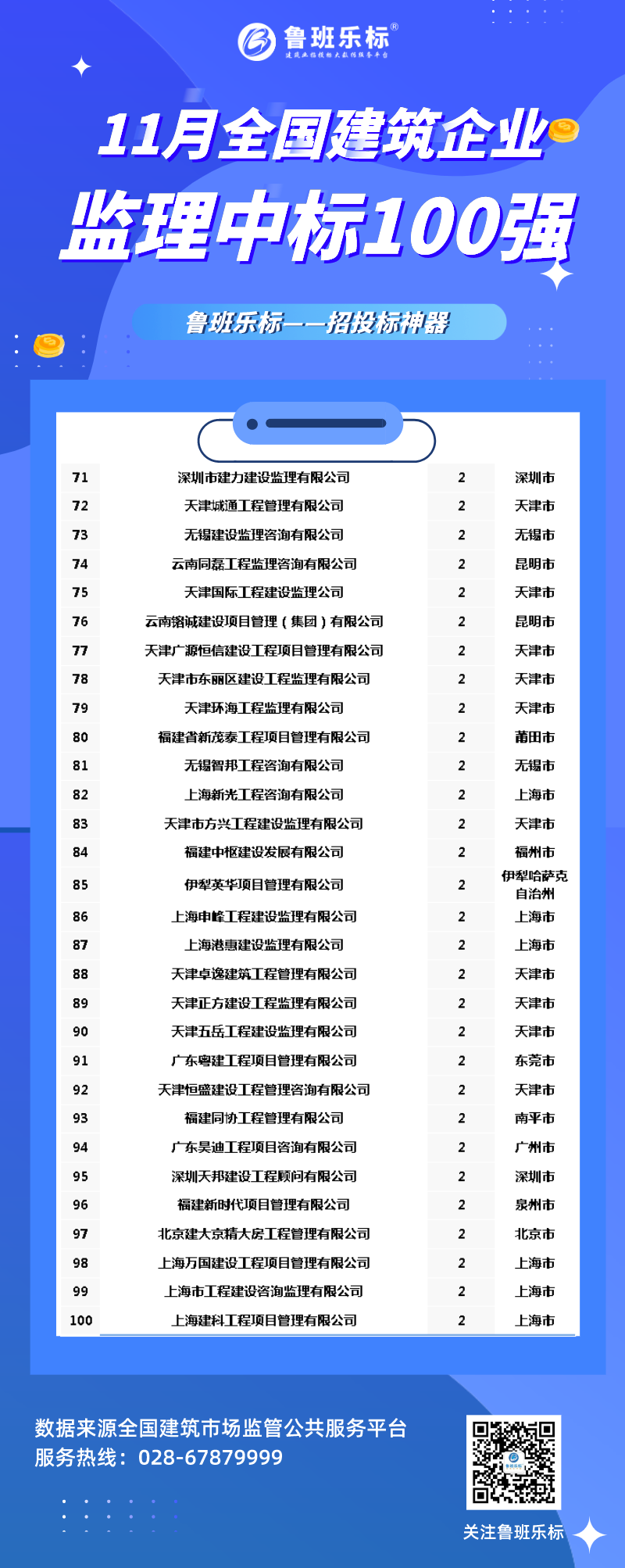 湖北建盛工程項(xiàng)目管理有限公司以中標(biāo)14個(gè)居榜首;