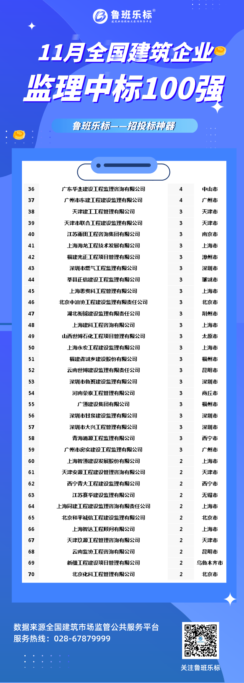 湖北華茂建設(shè)監(jiān)理有限責(zé)任公司以中標(biāo)10個(gè)居第三名。