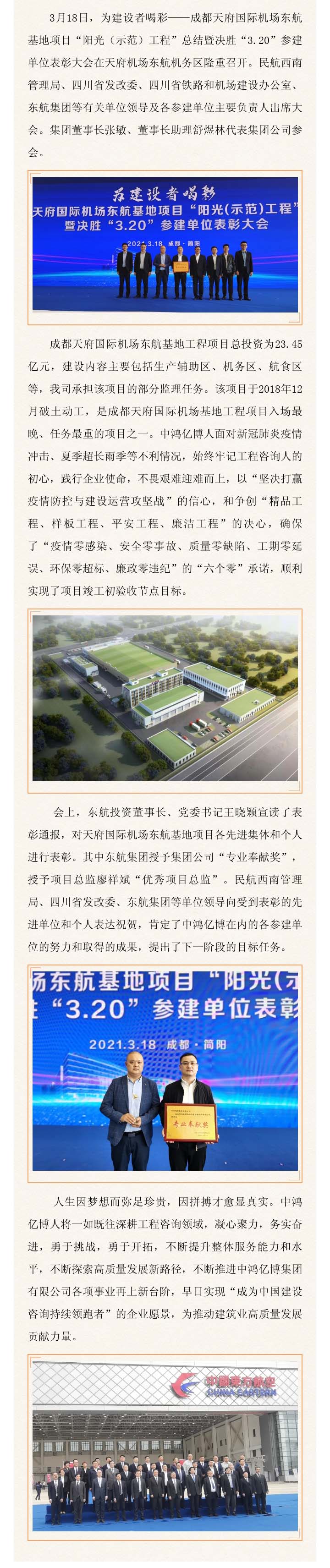 攜手中鴻億博 共創(chuàng)行業(yè)楷模│“天府國際機場東航基地項目”受到各方高度贊賞