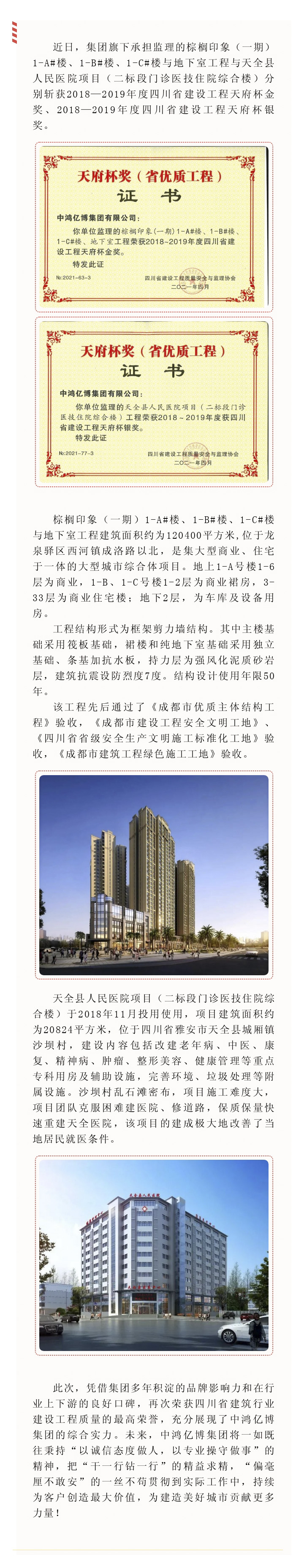 匠心顯成效|集團兩項目再獲四川省建筑行業(yè)建設(shè)工程質(zhì)量的最高榮譽