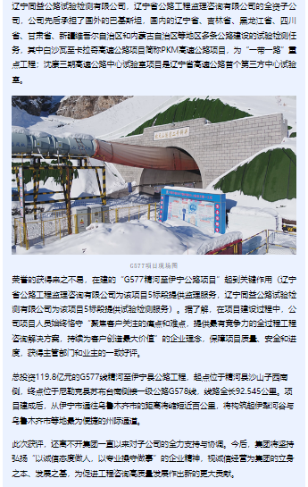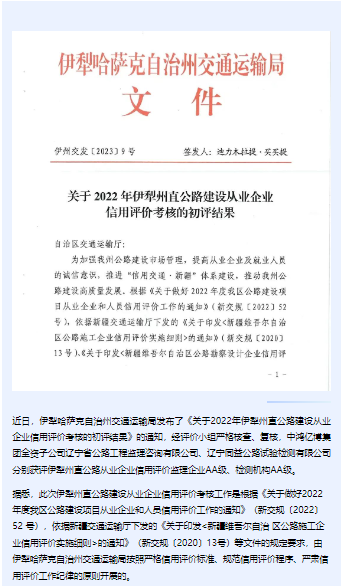 集團(tuán)全資子公司獲評(píng)伊犁州直公路從業(yè)企業(yè)信用評(píng)價(jià)“監(jiān)理企業(yè)和檢測(cè)機(jī)構(gòu)AA級(jí)”