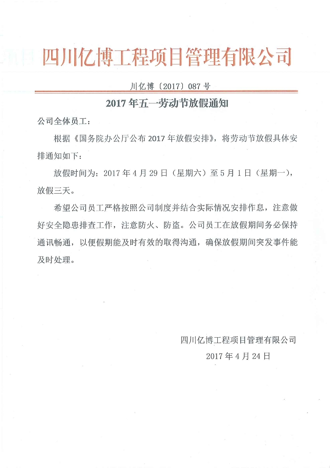 關(guān)于五一勞動節(jié)放假安排的通知