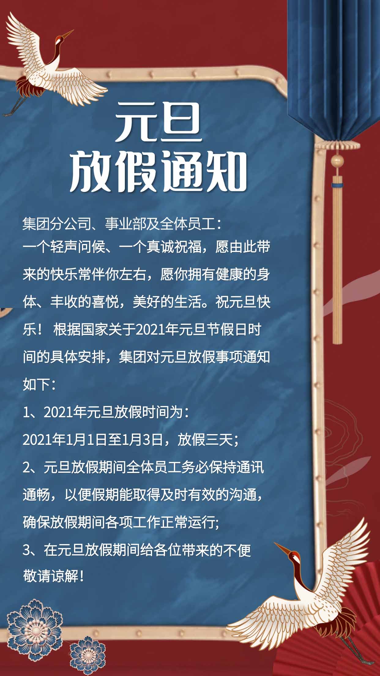 集團公司元旦放假通知來啦!速來圍觀!