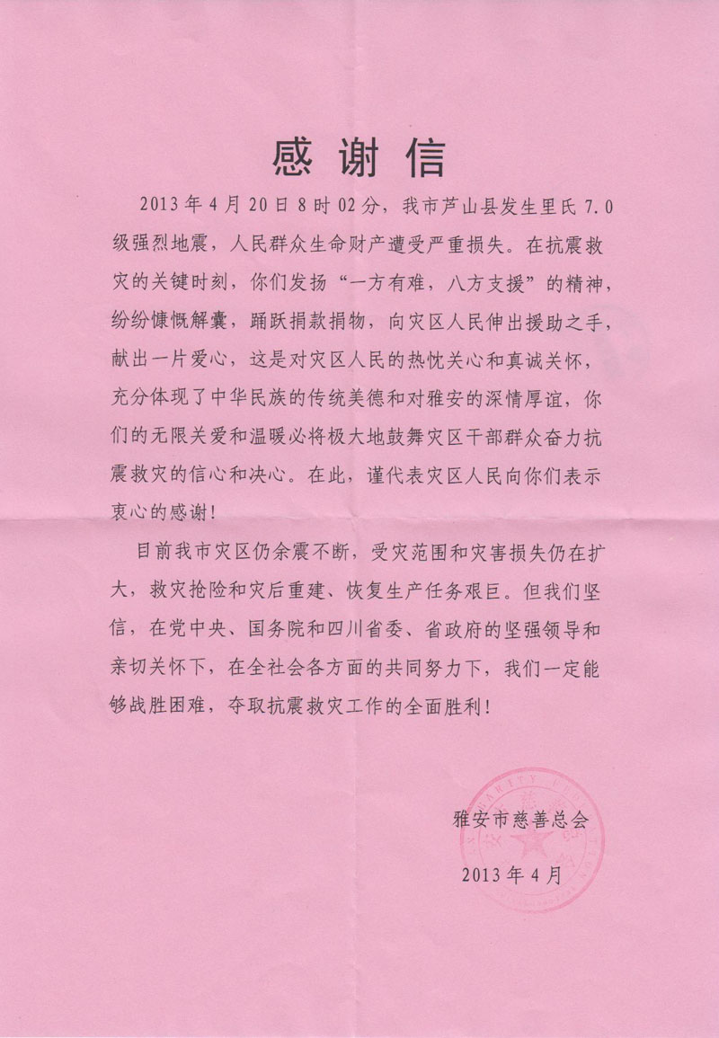面對(duì)數(shù)百名同胞的逝去,上萬名同胞的受傷,作為遠(yuǎn)離血淚之地的我們,雖然不能親臨現(xiàn)場(chǎng)解救每個(gè)微弱的生命,不能親臨現(xiàn)場(chǎng)緩解每位傷員的疼痛,但四川億博公司于震后2017年5月5日為蘆山地震捐款。通過我們力所能及的實(shí)際行動(dòng),發(fā)揚(yáng)“人道、博愛、奉獻(xiàn)”的精神,伸出熱情的雙手向?yàn)?zāi)區(qū)同胞奉獻(xiàn)自己愛的力量,幫助災(zāi)區(qū)人民渡過難關(guān),戰(zhàn)勝災(zāi)害,早日恢復(fù)生產(chǎn),重建美好家園。