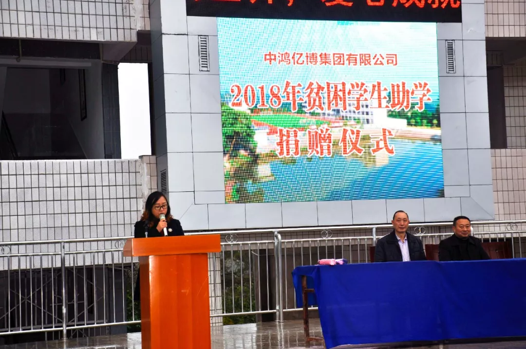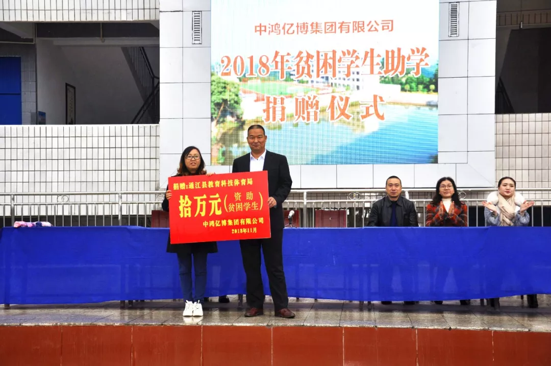 2018年11月15日,受中鴻億博集團(tuán)有限公司公益基金會(huì)會(huì)長(zhǎng)張敏先生委托,中鴻億博基金會(huì)理事長(zhǎng)茍坤先生、秘書長(zhǎng)何涌泉先生、組織策劃部長(zhǎng)陳鳳遐女士、資產(chǎn)管理部長(zhǎng)嚴(yán)邑先生、宣傳部長(zhǎng)周玲女士,在通江縣教育科技體育局領(lǐng)導(dǎo)何瑜女士、通江縣科技體育局學(xué)生資助中心主任馮光賢先生以及所有受助學(xué)校領(lǐng)導(dǎo)的共同見證下,理事長(zhǎng)茍坤先生將中鴻億博集團(tuán)有限公司及公司全體員工捐獻(xiàn)的愛心善款10萬(wàn)元捐贈(zèng)給麻石中學(xué)及通江縣內(nèi)部分貧困適齡學(xué)生,覆蓋小學(xué)、中學(xué)、大學(xué)共計(jì)80余人。