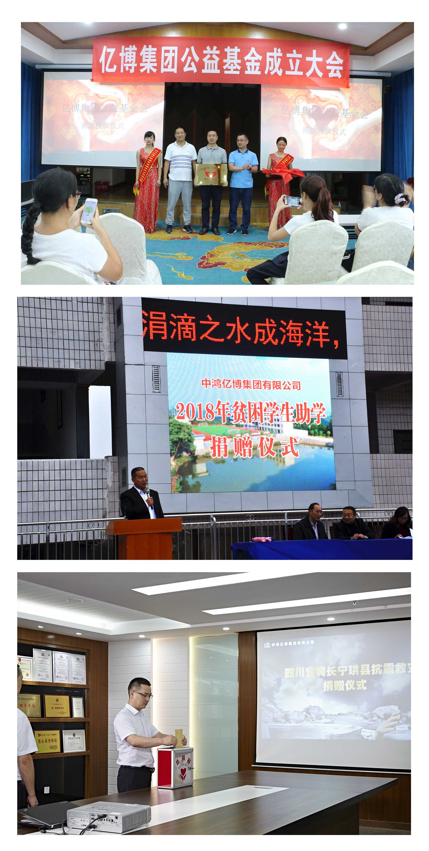 億博集團(tuán)自成立以來,始終秉承“真誠務(wù)實(shí)、誠信經(jīng)營、科學(xué)管理、精致服務(wù)”的經(jīng)營理念,企業(yè)在自身發(fā)展的同時,積極投身公益事業(yè)。億博公益基金會從成立至今,對外捐贈達(dá)180余萬元,完成了各類社會助學(xué)、救助貧困、抗震救災(zāi)、關(guān)愛老人等多方面的慈善資助。億博公益基金會將會一直秉承“扶弱濟(jì)困、救助孤寡、關(guān)愛單親、照顧留守、幫助員工”的宗旨,長期堅(jiān)持開展扶貧、助學(xué)、助困等活動,主動傳遞社會正能量。