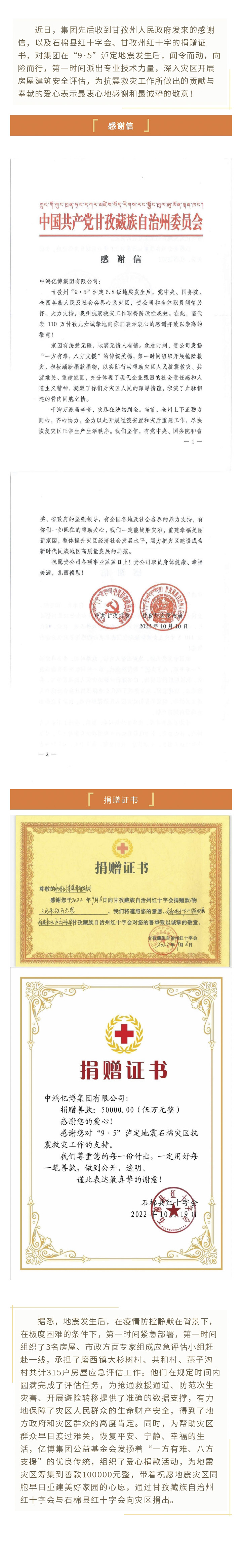 【感謝信】集團(tuán)“9·5”瀘定地震抗震救災(zāi)工作得到甘孜州政府肯定